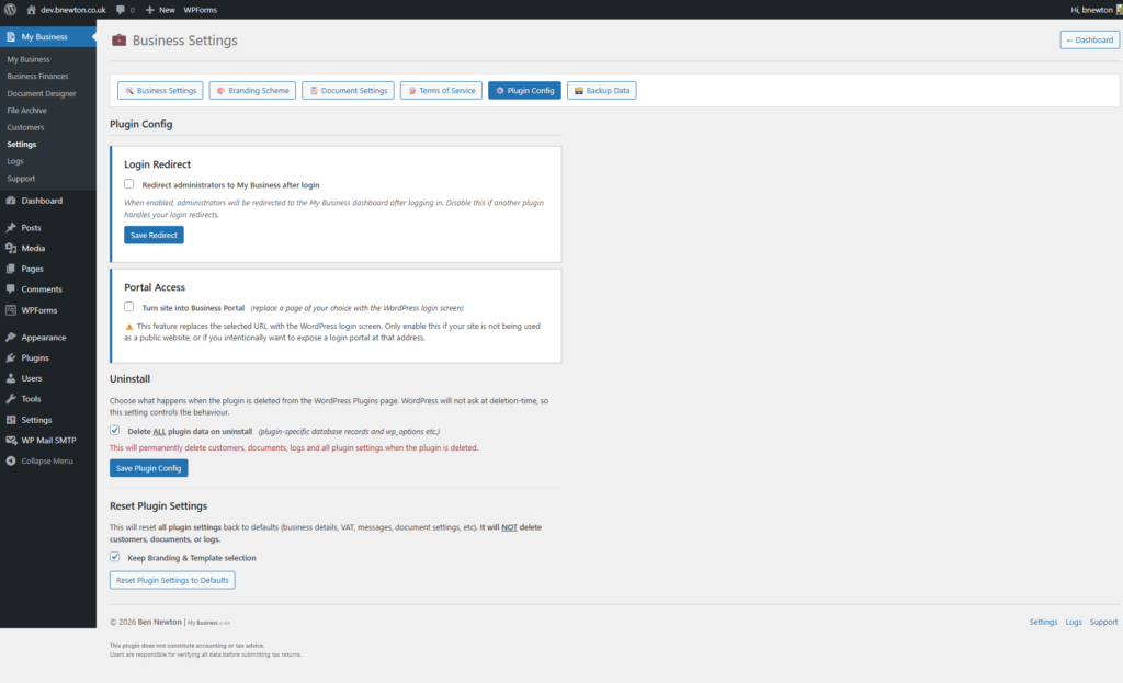 Add the plugin, activate it, and open the Business Manager menu.