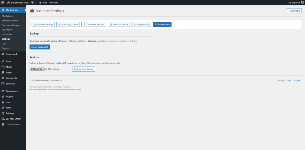 All data is stored in your WordPress database and can be included in your normal website backups. JiffyTrade™ also includes tools to help export and restore your business data so you can protect your records.